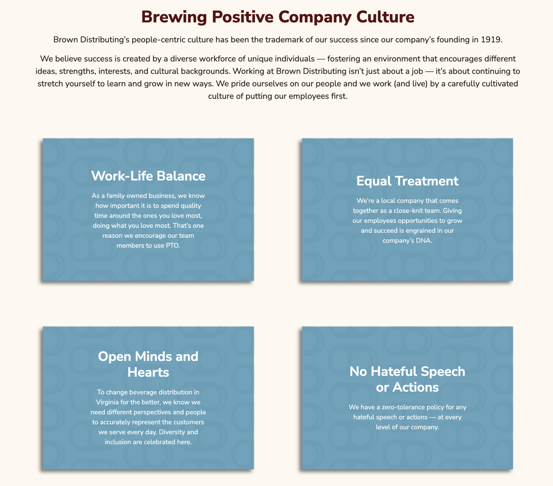 Brown Distributing, a leader in beverage distribution, needed more than just a facelift. They needed a complete digital transformation. Their current website needed attention to more efficiently adapt to the variety of users visiting it: distribution partners, suppliers, sponsorship seekers, career prospects, and employees. Madison+Main stepped in to design a modern web experience and produce compelling “Day in the Life” videos to help with personnel and hiring. The result? A sleek, marketable website with a streamlined user flow and a suite of authentic video content to attract top talent while showcasing the day-to-day workings at Brown.